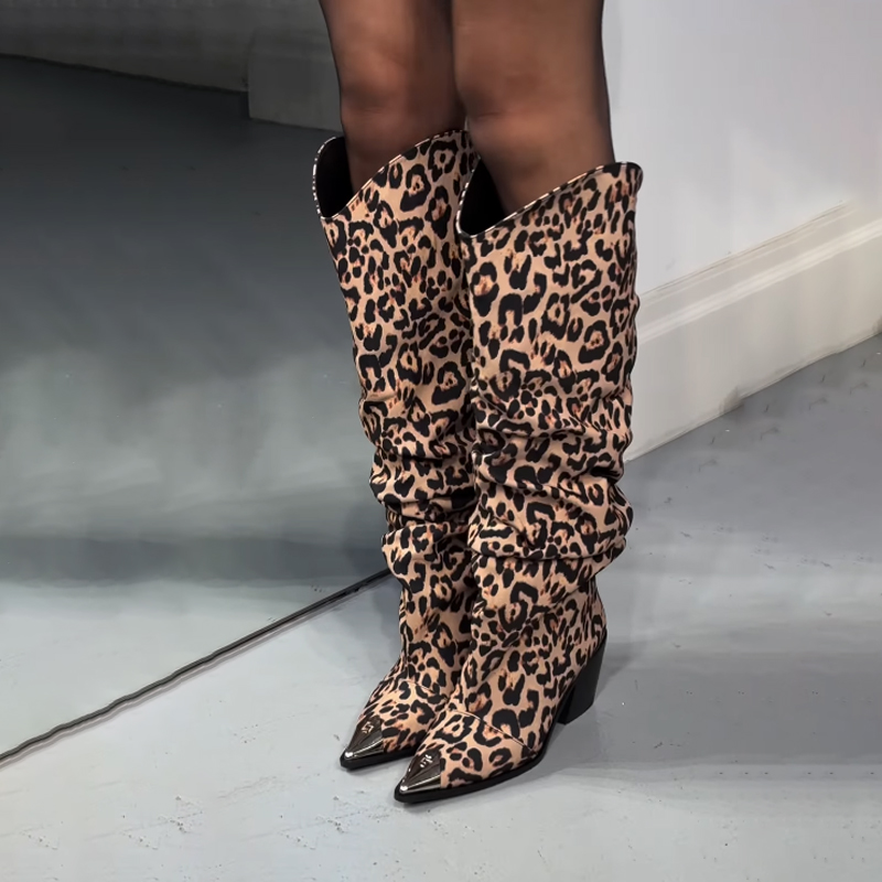 Square Toe Leopard Print Vintage Suede Ankle Boots