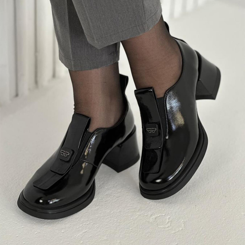 Women's Shallow Square Toe Thick Heel Patent Leather Shoes