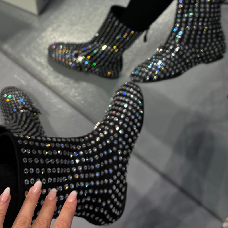 Bow Rhinestone Sparkle Thick-soled Slip-on Loafers
