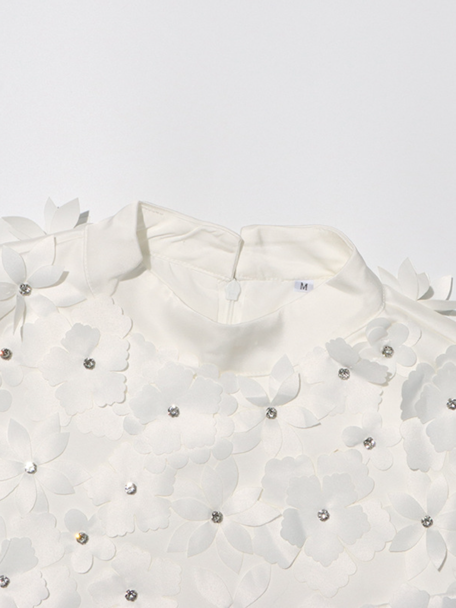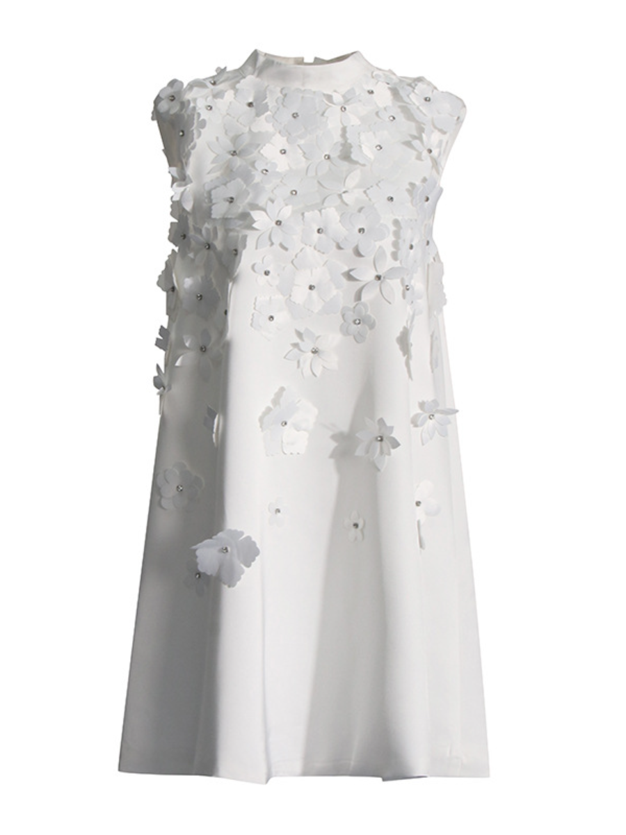 Beaded 3D Flower Sleeveless Dress