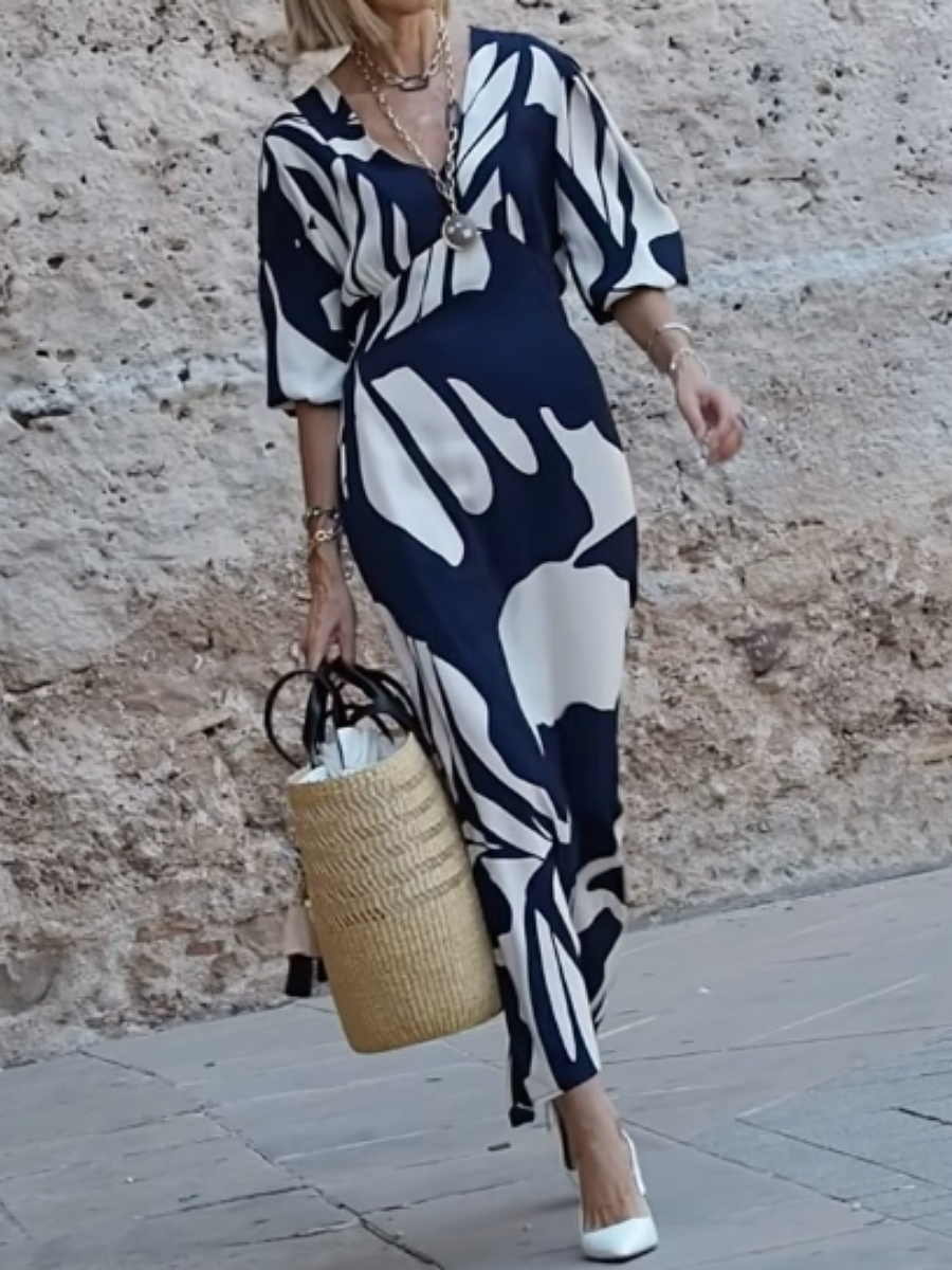 Style:CasualPattern Type:Graphic, PrintDetails:Knot, ZipperNeckline:V neckSleeve Length: Half SleeveLength:MidiWaist Line:High WaistMaterial:Woven FabricComposition:95% Polyester, 5% ElastaneCare Instructions:Machine wash