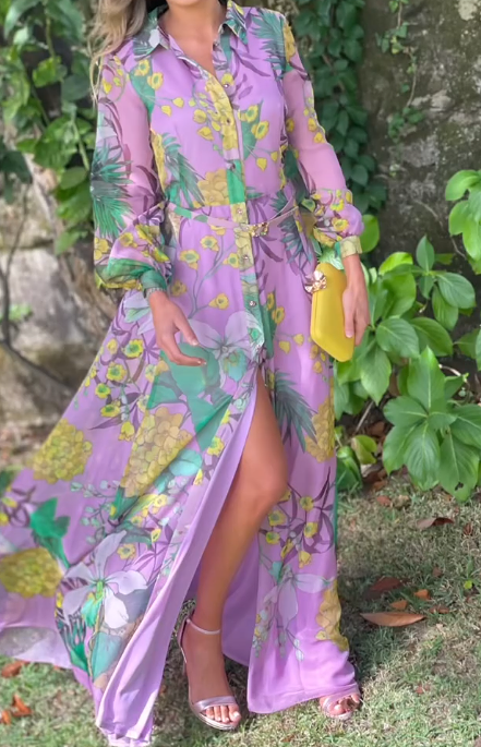 Demure Chiffon Floral Shirt Dress