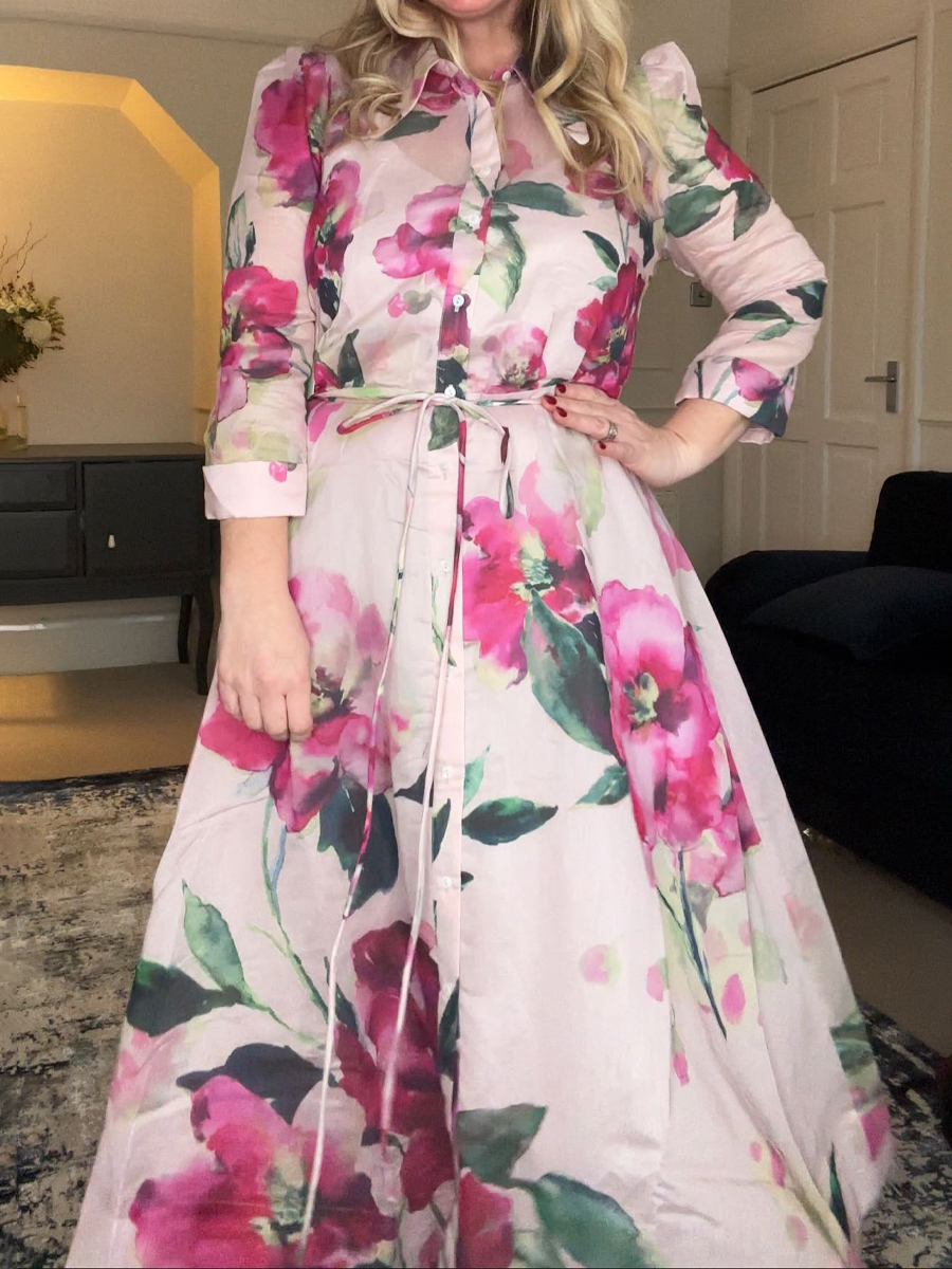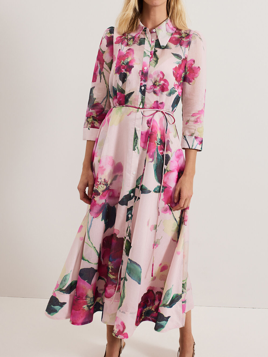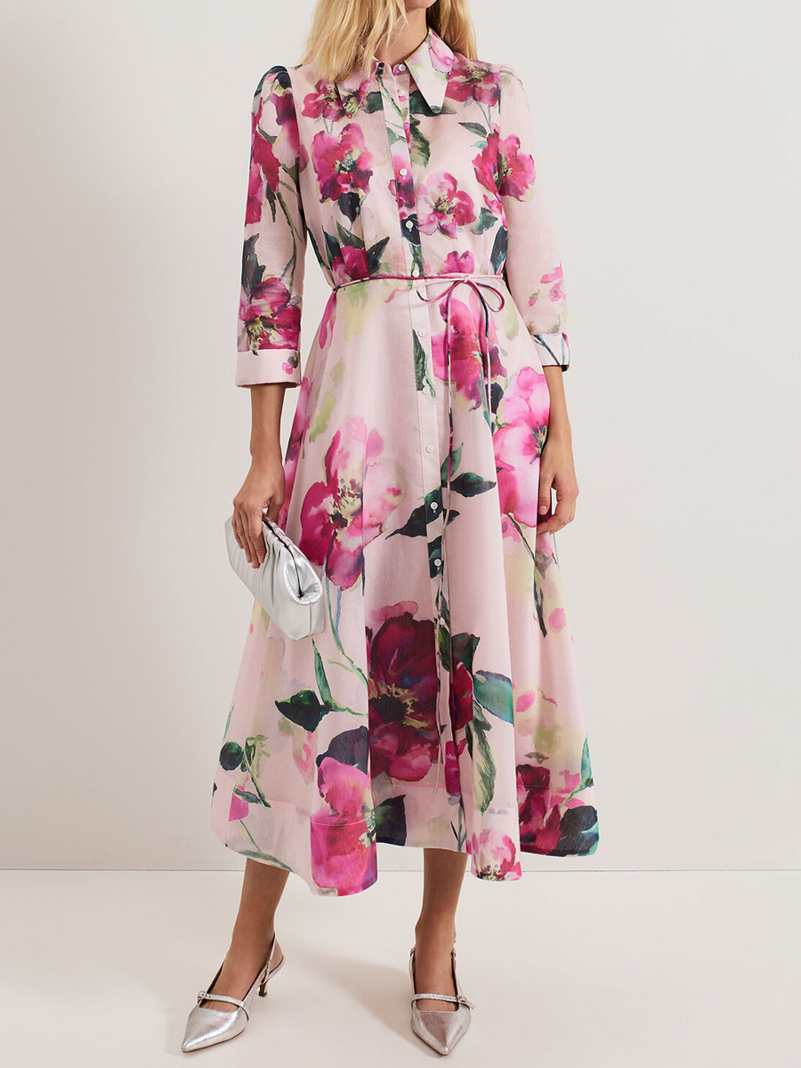 Elegant Cropped Sleeves Printed Dress