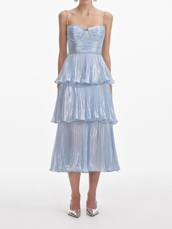 This midi dress is crafted with pleated metallic fabric to highlight its playful, feminine silhouette.