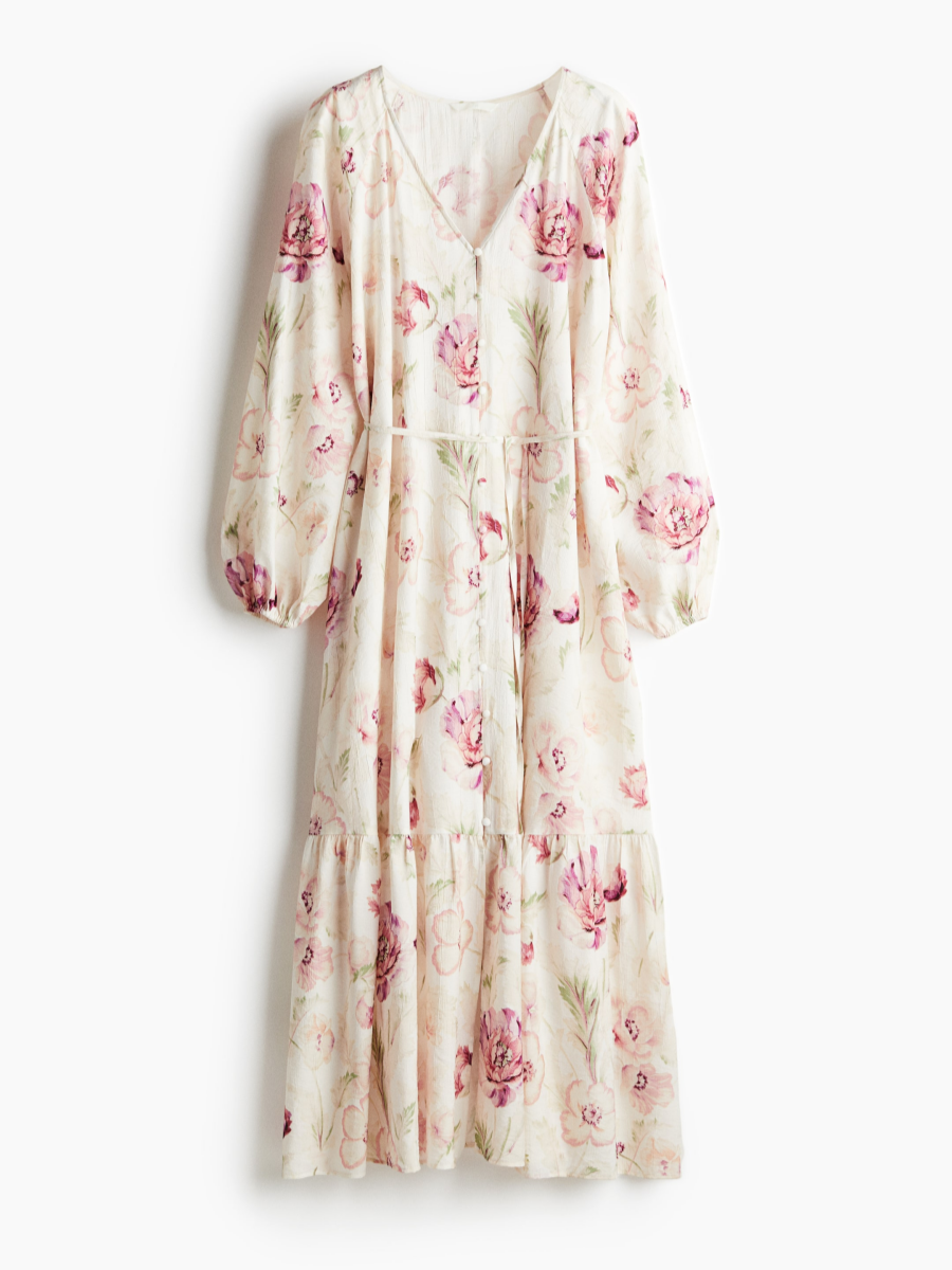 Gathered tier above hem for added volume.